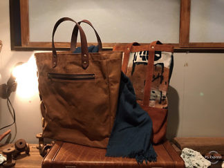 染料作りからバッグの仕立てまで行う天然色染屋古今の展示販売会。