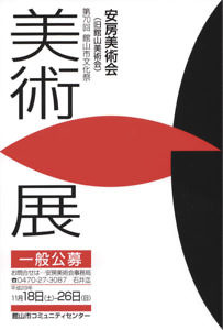 10時〜17時※初日は12時〜、最終日は16時まで/会場:館山コミュニティセンター/安房美術会は大正10年発足の地域の美術団体。秋の文化祭展は会員だけでなく一般からも作品を募集し、100点前後の作品を展示する。部門は洋画、日本画、彫刻、工芸。