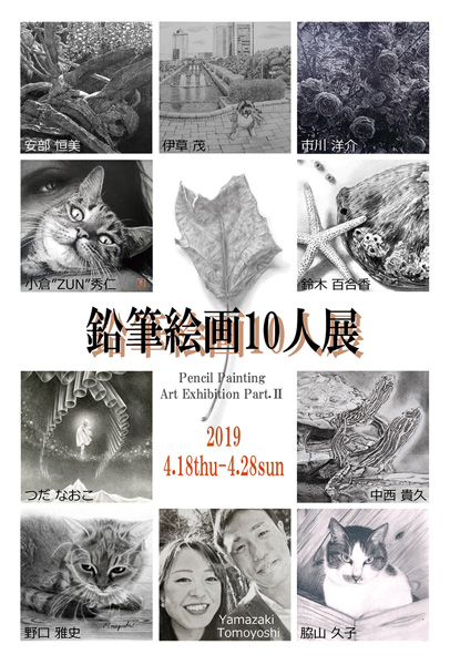 鉛筆画家10人が織りなすモノトーン絵画の世界。出品作家:安部恒美、伊草茂、市川洋介、小倉“ZUN”秀仁、鈴木百合香、つだなおこ、中西貴久、野口雅史、Yamazaki Tomoyoshi、脇山久子