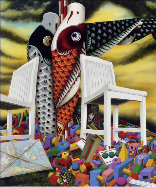 千葉県在住の画家・濵田清さんの個展。細密に描かれた凧やコマ、鯉のぼりなど、遠い子供時代の記憶を心の中の風景として描いた作品が展示される。