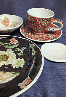 会津若松で制作を行う鈴木幹雄さん(成形)と孫枝さん(絵付)夫妻による陶展。