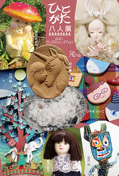 ひとがたをテーマに、テキスタイル・創作人形・オブジェ・絵画等、手法や素材もいろいろ、個性豊かな8人のアーティストが作品を発表。