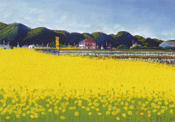 南房総の風景をパステル水彩画で描き続ける飯田真菜美さんの当館10回目となる個展。