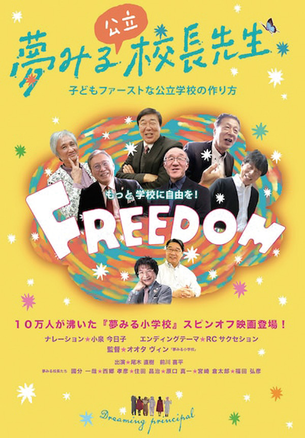 子どもを第一に考え学校改革を行った9人のユニークな公立小学校校長を追ったドキュメンタリー映画。文部科学省選定映画『夢みる小学校』の公立版。全国各地の、実際の公立小学校での自由で多様な取り組みを紹介する内容。午前の部は乳幼児と一緒の親子優先上映、午後は通常上映。上映後、感想をシェアする対話タイムを設ける。イベントのサイトより申し込み。