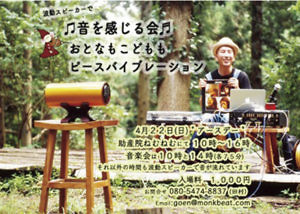 助産院ねむねむとmonk beat studioが主催する音楽鑑賞会。音楽会は10時〜、14時〜の2回、各75分。それ以外の時間も波動スピーカーで音が流れている。