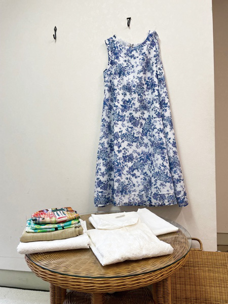 櫻井美知子さんが仕立てたワンピース、シャツ、ブラウス、カットソーなど、初夏から秋までの着心地のいい服をそれぞれ1点ずつ展示する。その中のデザインから布地、サイズを選びオーダーすることもできる。