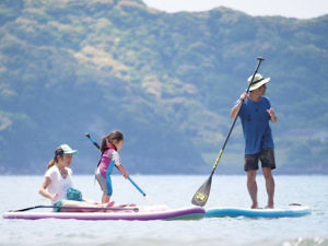 大人気のサップ(SUP)で海遊びをした後は古民家にてハーバリウム(植物標本)作製を体験する。