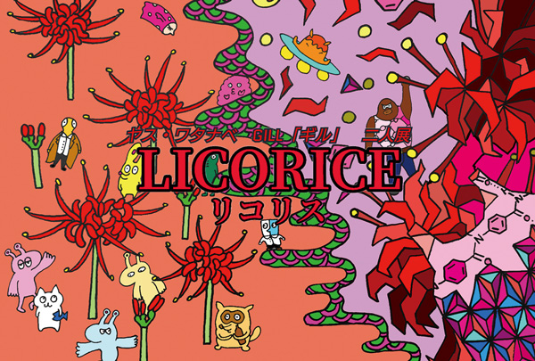 様々な花言葉を持つリコリスをテーマに、ヤス・ワタナベとギルがそれぞれ作品を展示する。