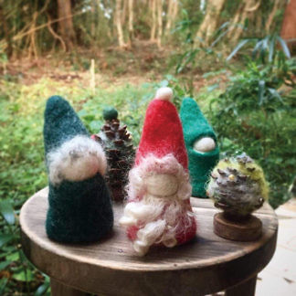 羊毛からクリスマスの小人飾りを作る。講師は鴨川市在住で、動物や身の回りの自然物をモチーフにフェルト作品を制作しているcosy posyさん。