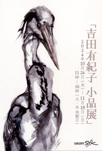 武蔵野美術大及び同大学院で日本画の画材と和紙の質感による動物表現を追求し、現在はハトやアオサギなど身近な野鳥を主な題材として作品を制作する吉田有紀子さんの個展。