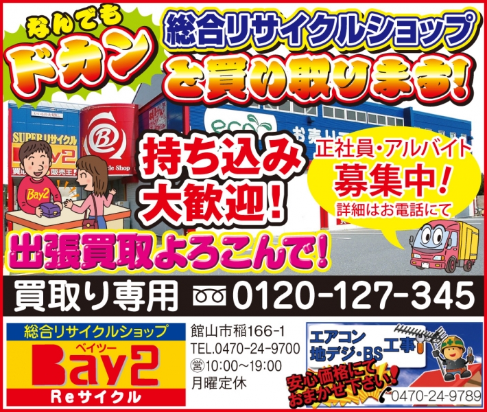 エイトホーム、Bay2、ちくらパソコン教室、ファミール産院、ぐるたび、プレシャスジュエリーHANA、半十郎、ハヤマミュージックスクール、古着屋本舗、イシイタカシ、仁幸夢店、寿々、かみじょう、鴨川はり灸院、加藤建設、南総文化ホール、カーショップオアシス、押元建設、パレット、ピース製菓、スタイルサロン館山、杉木写真館、田辺薬局、タテカン、マダムベラ (順不同・敬称略)