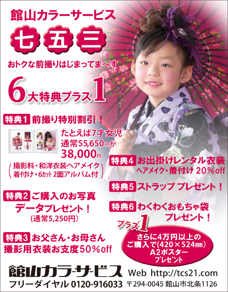 Bay2、地質士、カットファクトリー館山店、ドリームハウス、ファミール産院、ファミリーオ館山、GARDEN、迎賓館、半十郎、ハヤマミュージックスクール、古着屋本舗、石井工務店、仁幸夢店、鴨川館、加藤建設、カーショップオアシス、オーパ・ヴィラージュ、スタイルサロン館山、杉木写真館、田辺薬局、タテカン、館山カラーサービス、マダムベラ(順不同・敬称略)