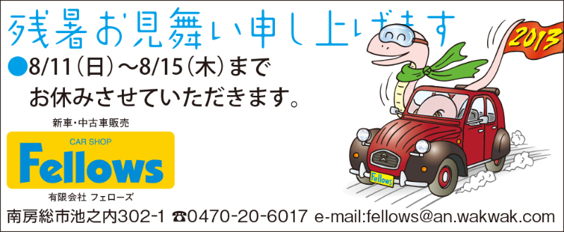 アクアホーム、Bay2、ボートピア市原、カットファクトリー館山店、クリニーク・デル・マーレ館山、フェローズ、後藤義光作品集(コアブックス)、古着屋本舗、石井工務店、加藤建設、松井郁夫建築設計事務所・髙木建設、茂八すし、南房パラダイス、サビーネ、潮風王国、スタイルサロン館山、杉木写真館、館山カラーサービス(順不同・敬称略)