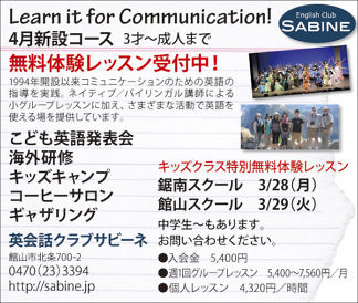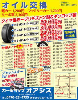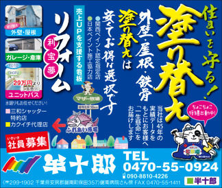 Bay2、カーショップオアシス、カットファクトリー、コンソラーレ、サビーネ英会話教室、斉藤秀男、芳喜楼、茂八すし、clubアスカ、アイダ設計、クリンクル、株式会社タイセイ、アンティークホテルら・みらどーる、加藤建設、鴨川はり灸院、館山カラーサービス、庄作商店、上瀬戸さんあーる、千葉精工エンジニアリング株式会社、半十郎、美樹鮨、北斗星(順不同・敬称略)
