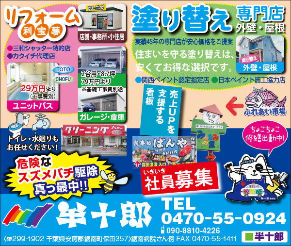Bay2、Clubアスカ、HILO-Hawaiian、SEA DAYS、WinBe、アグリパワーラボ、エムズホーム、オアシス、タテカン、ブリエ、加藤建設、鴨川はり灸院、館山カラーサービス、杉木写真館、盛栄堂、石井工務店、石黒マッサージ、千辰地所、潮風王国、南総文化ホール、半十郎、芳喜楼、茂八すし(順不同・敬称略)