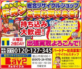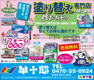 Bay2、Dog-Salon-Pono、アイダ設計、株式会社アスカ、カーショップオアシス、カットファクトリー館山、メガネのコバヤシ、ピース製菓、ファミール産院、ベルワールド、加藤建設株式会社、鴨川はり灸院、鴨川館、館山カラーサービス、畳オサダ、千葉県生涯大学校、半十郎、茂八すし(順不同)