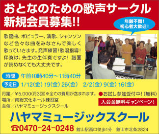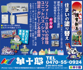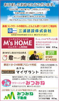 Bay2、KENJI_WOOD、NewYorker、オアシス、サビーネ、ハギワラ洋品店、ハヤマミュージックスクール、フェローズ、やわたんまちカレンダー、ラーメン酒場わっしょい、阿含宗千葉道場、加藤建設、鴨川館、館山カラーサービス、亀や和草、三浦グループ、新平、杉木写真館、石井工務店、田邉薬局、半十郎、富浦ロイヤルホテル、平砂浦ビーチホテル、房総エキスプレス(順不同)