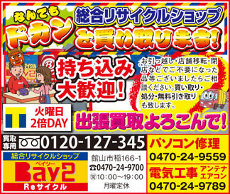 茂八すし、Bay2、Clubアスカ、TOTOリモデルクラブ南房総・館山店会、アンディトレーディング株式会社、カーショップオアシス、株式会社コア、ヘアデザインパッシュ、ファミール産院、加藤建設株式会社、鴨川はり灸院、鴨川館、館山カラーサービス、畳のオサダ、南総文化ホール、半十郎、富浦ロイヤルホテル、木村順子(順不同)