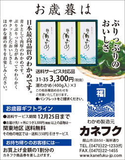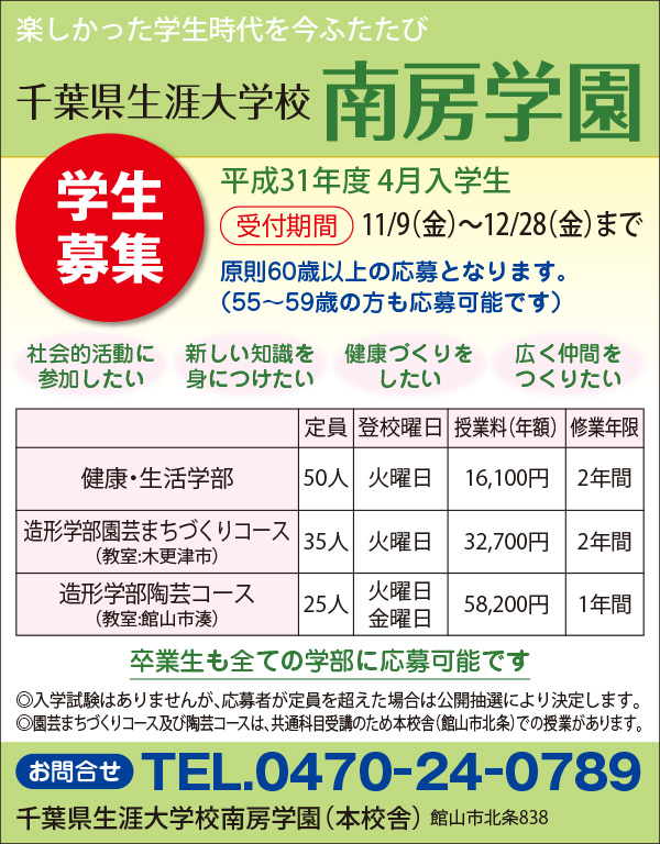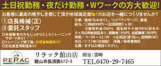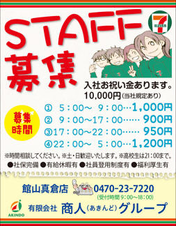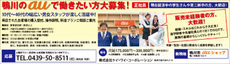 有限会社商人グループ、Bay2、マダムベラ、整体Sacram_yu、杉木写真館、アンディトレーディング株式会社、南房総エイトホーム、エビハラグループ、エフケイバ木更津、エムズホーム、カットファクトリーα館山店、カーショップオアシス、介護付有料老人ホームハートフル鴨川、ファミール産院、リラック館山、わかめ製造元カネフク、加藤建設株式会社、株式会社ケイ・ワイ・コーポレーション、千葉県生涯大学校、田中惣一商店、田辺薬局、半十郎、芳喜楼、房総エキスプレス、茂八すし(順不同)