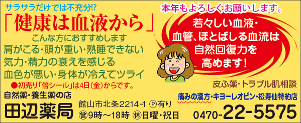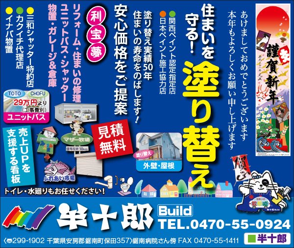 Bay2、kanaoa Kitchen、LANI RESORTS GROUP、NewYorker、アンディトレーディング株式会社、エビハラグループ、エフケイバ木更津、カーショップオアシス、カットファクトリーα館山店、ハギワラ洋品店、ハミルトンホテルKAZUSA、ハヤマミュージックスクール、ピース製菓、ファミール産院たてやま、プレシャスジュエリーHANA、メガネのコバヤシ、阿含宗千葉道場、英会話クラブサビーネ、加藤建設株式会社、介護付有料老人ホームハートフル鴨川、株式会社石井工務店、館山ジェット船、館山商工会議所青年部、亀や和草、商人、新平、杉木写真館、田邉薬局、半十郎、芳喜楼、房総エキスプレス、有限会社コアコミュニケーション、有限会社フェローズ(順不同)