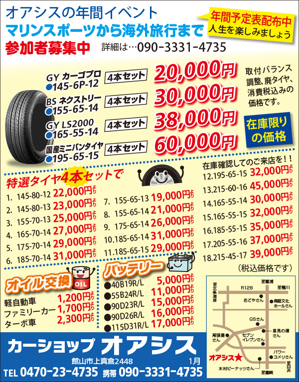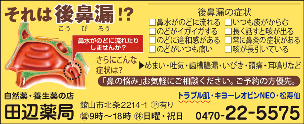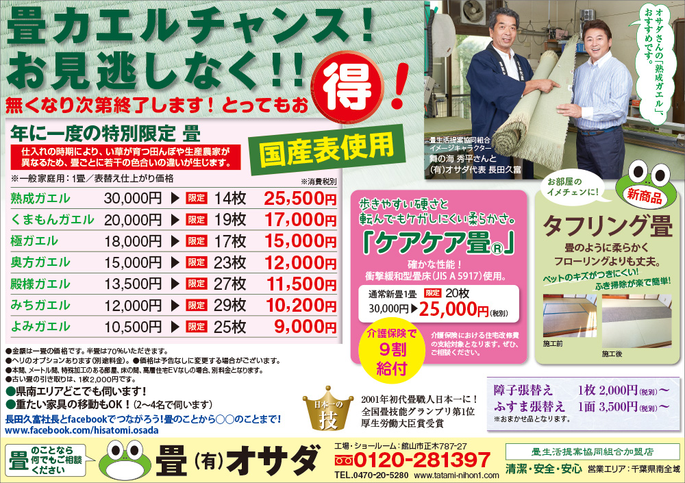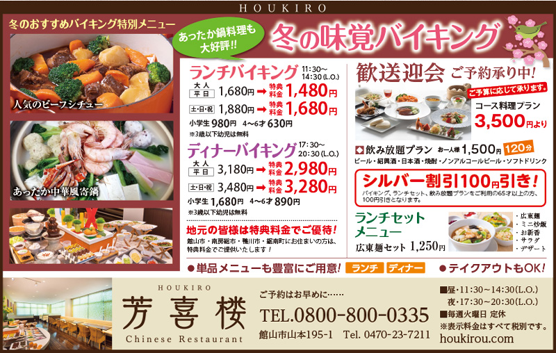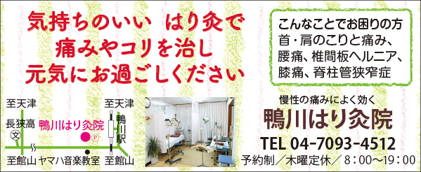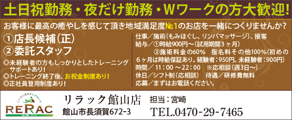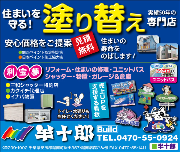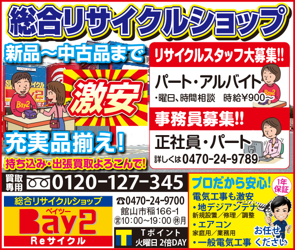 Bay2、ELYSION KISARAZU、HAIR DESIGN PASHU、アンディトレーディング株式会社、オアシス、サクラム・ユウ、ファミール産院、マダムベラ、リラック館山店、加藤建設株式会社、鴨川はり灸院、東海汽船株式会社、君津市民文化ホール、材木店KENJI WOOD、畳(有)オサダ、新昭和ウィザース、南総文化ホール、半十郎、芳喜楼、茂八すし、田辺薬局(順不同)