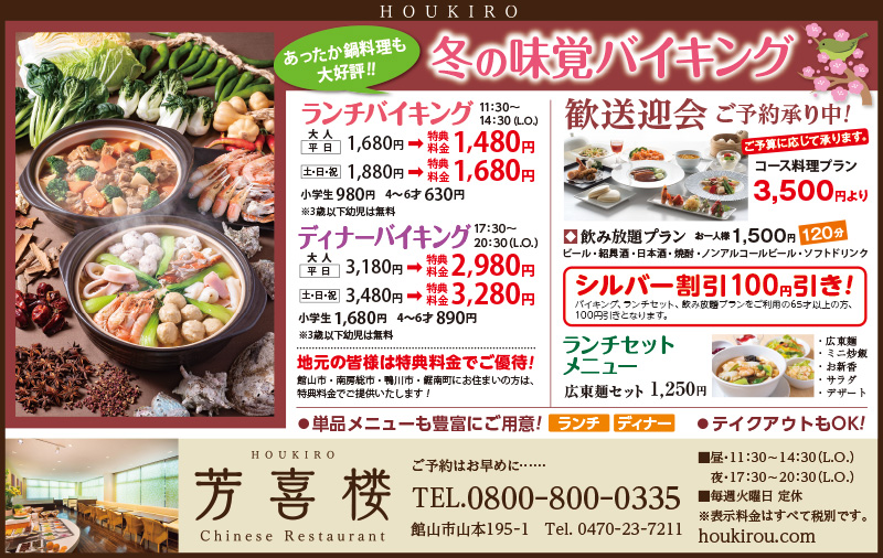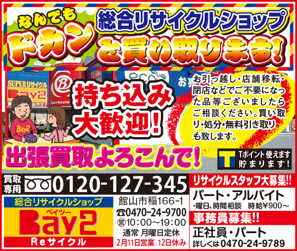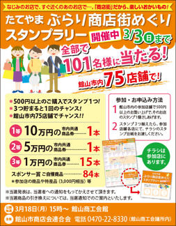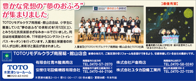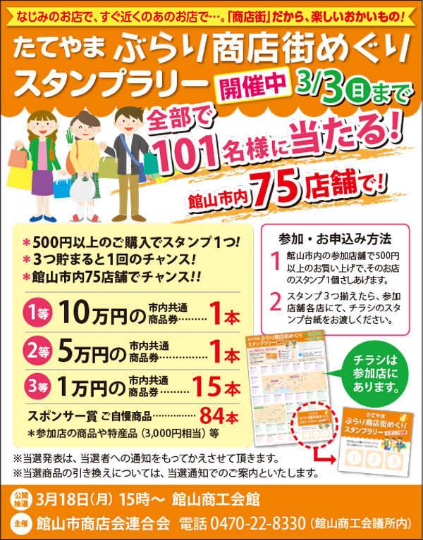 Bay2、TOTOリモデルクラブ南房総・館山店会、アンディトレーディング株式会社、サクラム・ユウ、(株)ジェットストリームトラベル、ハミルトンホテルKAZUSA、ボートピア市原、英会話クラブサビーネ、加藤建設株式会社、株式会社石井工務店、館山市商店会連合会、純和風旅館鴨川館、新昭和リビンズ住まいの情報館館山店、仁・幸夢店株式会社、盛栄堂、南総文化ホール、芳喜楼、茂八すし(順不同)