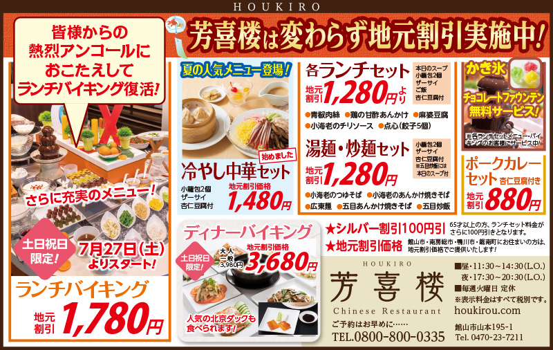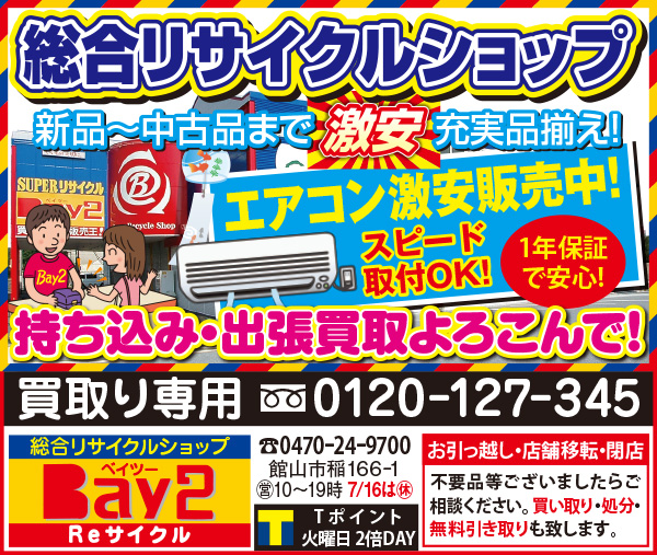 Bay2、アンディトレーディング株式会社、エイトホーム、カットファクトリーα館山店、ちくらサンバ、ディーピーエス、ディーピーエス02、リゾートフナカタ、英会話教室サビーネ、加藤建設、君津市民文化ホール、商人、畳のオサダ、新昭和リビンズ_館山店、石井工務店、田辺薬局、芳喜楼、茂八すし(順不同)