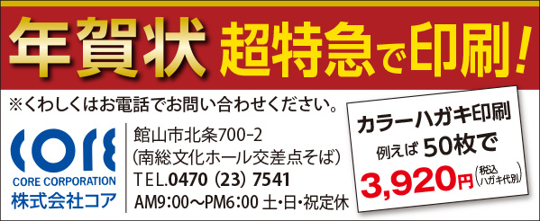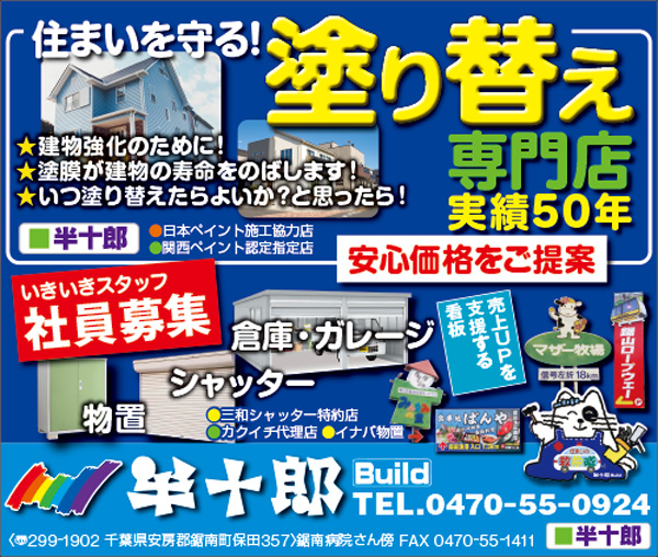 Bay2、アンディトレーディング株式会社、カットファクトリーα館山店、ボートピア市原、リフォームのみなみそう、英会話クラブサビーネ、加藤建設株式会社、株式会社コア、鴨川はり灸院、庄作商店、仁幸夢店、石井工務店、東栄建設株式会社、南総トータルホームサービス、半十郎、芳喜楼、有限会社フェローズ(順不同)