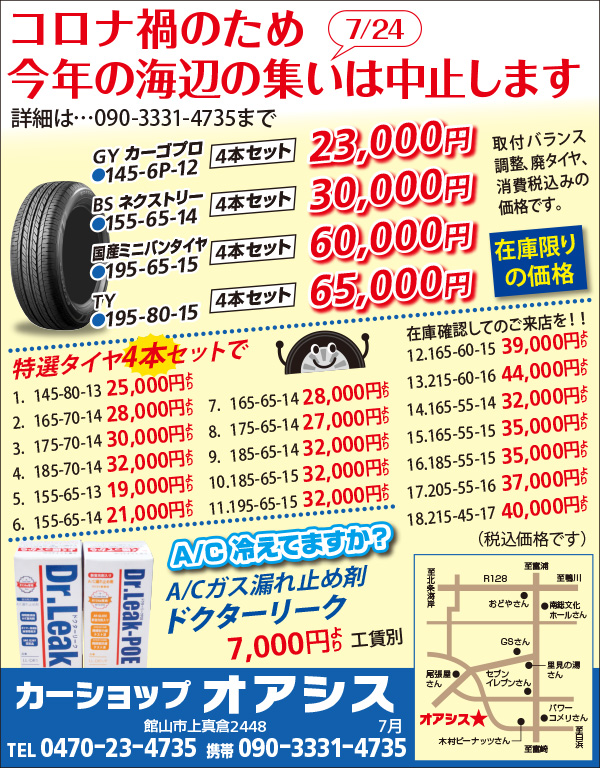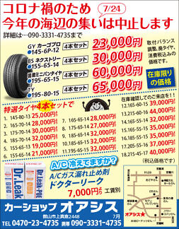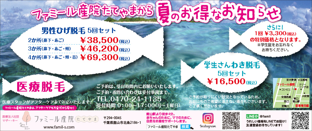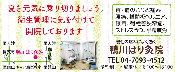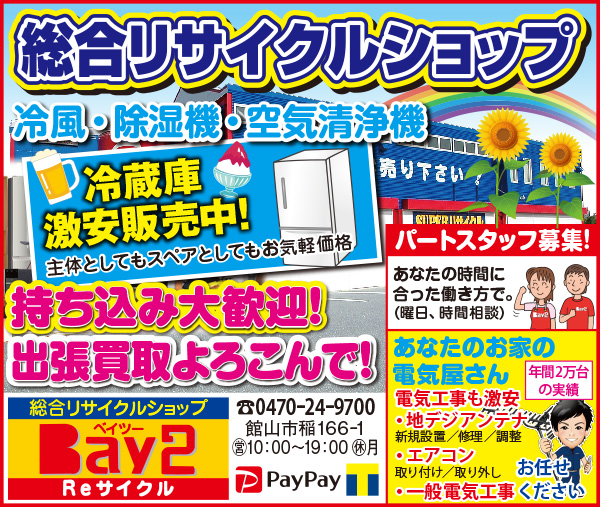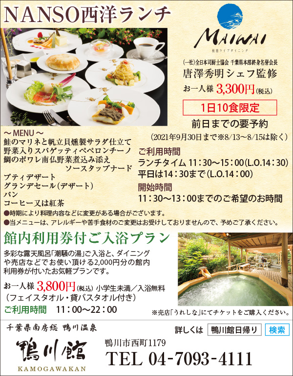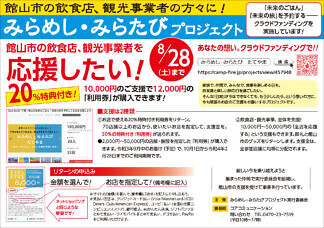 Bay2、アンディトレーディング株式会社、カーショップオアシス、カットファクトリーα館山店、ファミール産院たてやま、みらめし・みらたびプロジェクト実行委員会、塩田病院、加藤建設株式会社、株式会社溝口、鴨川はり灸院、鴨川館、君津市民文化ホール、那古寺、半十郎(順不同)
