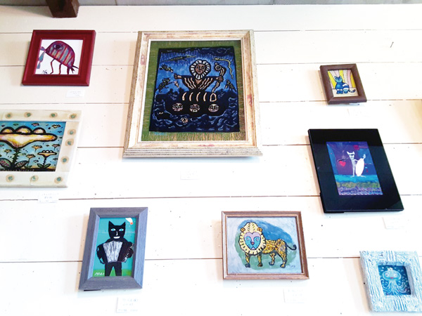海猫堂では初めてのガラス絵展。約25点の作品が展示される。