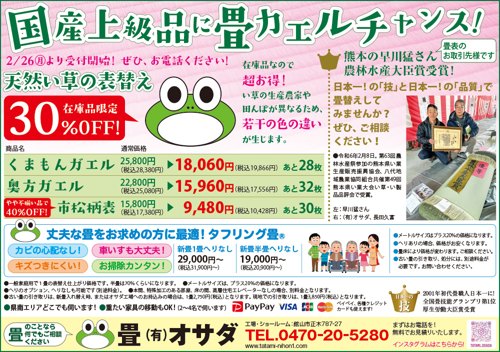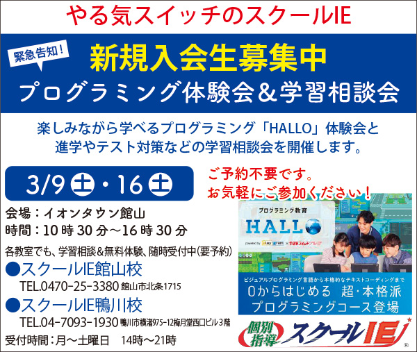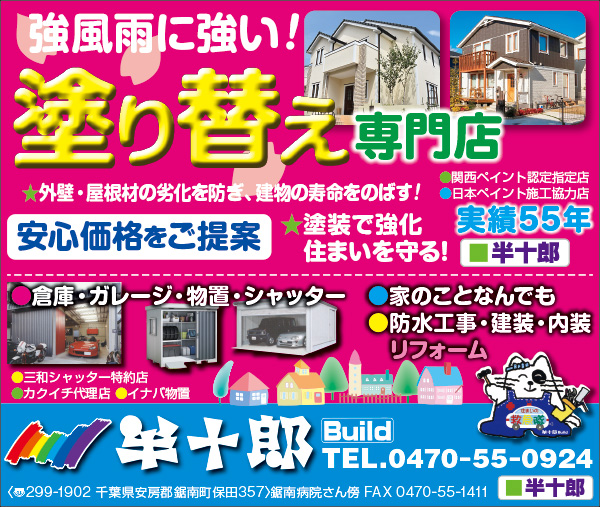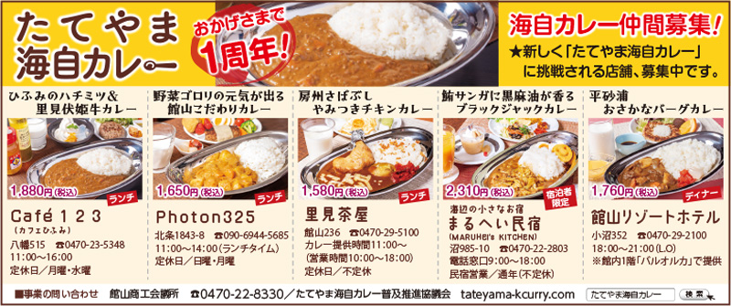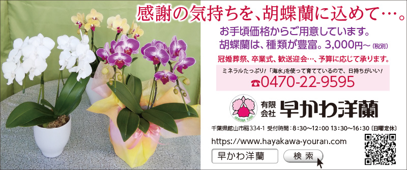 Alomony、Bay2、アンディトレーディング株式会社、エイトホーム、くすりのたなべ、スクールIE、ピラティス専門白浜スタジオ、ファミール産院たてやま、塩田病院、加藤建設株式会社、株式会社溝口、館山商工会議所、君津市民文化ホール、畳(有)オサダ、早かわ洋蘭、南総文化ホール、半十郎、茂八すし、和田造園(順不同)