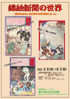 今回の展覧会では、落合芳幾が担当した東京日日新聞、月岡芳年による郵便報知新聞等35点が展示されている。錦絵としての価値もさることながら、明治初頭の庶民を楽しませた貴重な史料でもある。
