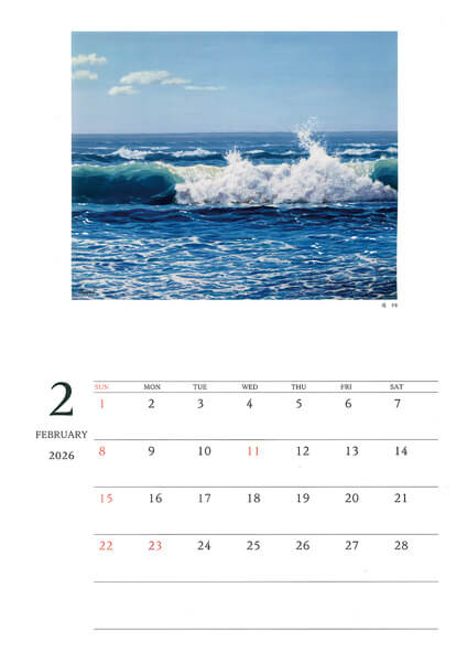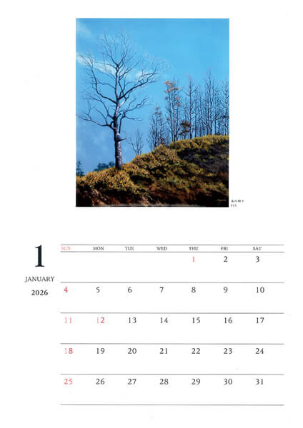 2025年と26年のカレンダーに使用した、画家・溝口七生さんによる原画全26点を展示。波と岩、砂丘、樹といった房州の自然や風景を描いた写実的な油彩が並ぶ。2026年のカレンダーの販売も行う(1部1500円)。会期中は作家遺族が在廊する。