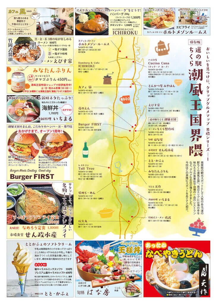 南房総の観光スポットとして人気のある「道の駅ちくら潮風王国」。周辺エリアには海の幸を味わえるお食事処や自慢の一品のレストランなど、グルメなお店が増えてきました。