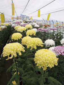 展示される菊は、品種や栽培方法により、盆養(厚物、厚走り、管物、だるま)、菊盆栽作り、福助作り、切り花のジャンルにわかれる。会場では、盆養、福助、ドーム菊の苗の育成と販売が行われる。11月3日(金・祝)には、広田友一氏(全日本菊花連盟資格審査委員)を招いての審査会が行われる。