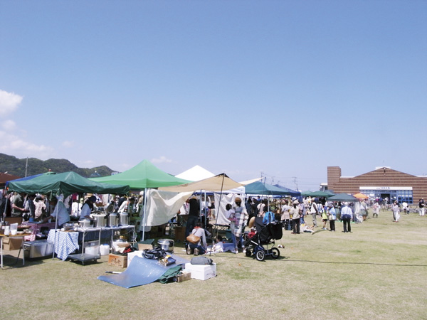 野外マーケットではハワイアングッズ、パエリヤ、豆腐工房のフード、ソフトドリンクなどのブースが出店。ライブは数多くの音楽フェスティバルに出演している東田トモヒロさんが熊本から登場。テントで泊まるキャンプもあり。問い合わせはメールと電話で。