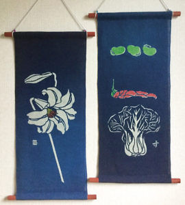 今回作る掛け軸は、サイズが30㎝×70㎝、柄は「野菜」か「百合」の2つから選べる。